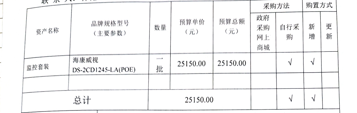 关于采购监控套装的公示